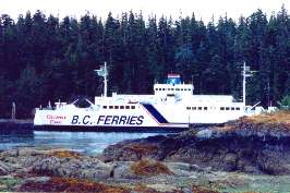 On-Line Photos from the BC Adventure Network Postcard: August 13, 1998 Crossing into Canada at the Peace Arch can be a frustrating experience. There is so much traffic, that crossing can take a long time. The Aldergrove crossing is much quicker. This crossing is due north of Lynden, and only a short distance from Canada 1, the "interstate" into Vancouver. If you cross at the Arch, the route will try to take you right through the middle of downtown Vancouver -- not particularly enjoyable if you are towing, or are driving a large, or even a small, motorhome. In a couple of days, our Discovery Coast ferry will leave from Port Hardy at the northernmost end of Vancouver Island. There are two ways to get to Port Hardy -- cross from Vancouver to Nanaimo, or drive up the Sunshine Coast to Powell River, and cross further north. We opted for the Sunshine Coast. An hour of sun dappled water travel took us to Gibsons, the first city on the Coast. We were headed to Porcupine Bay Provincial Park, near the town of Sechelt. So were several thousand other folks. Sechelt was having an Artist Faire, a Carnival, and a Country Western Music Festival -- all on the very same weekend. Lynne, a most pleasant grocery checker, complained that, "all summer long, it is dead here, then everything happens at one time". No room at Porcupine Bay, so on we went. When you travel to Powell River, you must take two ferries. Their schedules are such that, if you drive promptly from one to the next, you will be able to catch the second. But this schedule doesn't allow time for exploration. Since we had two days before we were due in Port Hardy, we ambled slowly along. After all, we could stay anywhere, except Porcupine Bay, or so we thought. The trouble was, arriving at our next choice, a park in Pender Harbor, we found everything BUT the campground. We found the Royal Victoria Yacht Club outstation. We found a very crowded community barbeque. We found two lovely lakes with nice swimming beaches. We did not find Garden Bay Provincial Park. So, on we went. Now our choices were getting a bit limited. Time wise, we had missed the next ferry, and the one following that wouldn't come for another two hours. That would mean getting into Powell River quite late. But as we drove north, we noticed a steady stream of cars heading south. This could only be ferry traffic. Could the always prompt Canadian boats be running late? Yes. Hurrah!