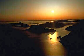 Postcard: August 18, 1998 The ferry, Queen of Coquitlam, sailed from Port Hardy (north end of BC's Vancouver Island) for the Discovery Coast at 9 pm on Monday the 17 th of August. We spent the next day cruising among the islands of the mid coast of British Columbia. Overnight, we passed down FitzHugh Sound en route to a morning visit to the native village of Bella Bella (Waglesla to its inhabitants). More accurately, we would stop in McLaughlin Bay, just a short distance south of the village. Bella Bella is off limits to non-native persons. The inhabitants of this town, (they refer to themselves as "aboriginal people") are attempting to determine just what impact the non-natives (tourists) will have on their people. Until they decide this question, the town remains closed. Interestingly, they were debating this question when we first came by on an Alaska bound ferry in 1987. One of the Heiltsuk (Waglesla natives) is trying to show his and the other coastal tribes just what benefits tourism can bring. Frank Brown's See Quests gives tours through the old towns (those established before the current Bella Bella), and takes tourists on canoe trips in this most scenic area. When our boat docked this morning, there was a presentation in a nearby Long House, a replica of the Long Houses of the tribes of this area. It was a small building, made of red cedar. A thunderbird spread its wings across the entry doors. The tips of those wings turned into canoes, each painted a different color, each symbolizing a different race of people. Under the outstretched wings was a depiction of a human form. This form, in turn, had its arms outstretched over all the continents. Inside there were seats along one side, and pictures of older times, fish harvesting, shellfish gathering, etc. At one end of the room was a display of most attractive jewelry and native artifacts. Indian girls were manning this display. Nearby sat two young men in front of a barkless log. Each held a short stick in his hand. Frank gave some introductory remarks, welcoming us to his land. He talked of the band's winter plans for building a full scale replica of a Long House, where dances and singing will be shared. His use of the word "shared" was deliberate. If you preform for someone, you are not on a level with him. If you "share" with someone, you are his equal. Next he introduced the young men. Keeping time by striking the log, Ian and Delbert Reed sang several "songs". These were more like chants than songs, the rhythm varied and tricky. There was a canoe song, and one for a women's dancing competition. Then the two of the women led the tour of the old towns, and Ian and Delbert, Cindy and Mary Jane took the braver ones on a canoe trip to Shearwater. We used two canoes-- Northern Dancers -- replicas of the old ceremonial canoes. These are not made of heavy cedar, but are fiberglass, traditionally painted. Each seats 12 persons, 10 to paddle, 1 to steer and 1 to set the paddle stroke pace. Delbert and Ian were the steerers, while Cindy and Mary Jane set the stroke. I paddled in Ian's canoe. We were to paddle the 5 miles from McLaughlin Bay to the town of Shearwater on Denny Island. While we did this, the ferry would also go to Shearwater (a scheduled stop) and wait for us there. It was a wonderful trip, I could imagine a trip much like many the long ago bands would have taken. I sat in the stern of the canoe, just in front of Ian. Like everyone else, my paddle was painted with Indian designs, adding to the illusion of a trip into the past. We paddled across a small channel and right along the shoreline of nearby Denny Island. I could have jumped ashore. We paddled under the cedar limbs and along the mossy rocks. Eagles watched us from their overhead perches. Ian pointed out the Bella Bella guardian, the Watcher. This is a totem pole with only one carving -- a face with large eyes. It peers out of the forest, watching the village, keeping it safe. Denny Island housed airmen during the Second World War. At that time, there was a board walkway all around the Island. Now it has fallen into ruin, contributing still more to the romance of this canoe trip. Add to that Ian's singing. He sang the song that the Haida gave his people when they made peace. He sang the songs his people sang when going to war. Just when I was feeling that this was all the world there was, I looked off into the main channel. Traveling so slowly that it could not be heard over Ian's songs, an enormous cruise ship sailed out into view. It was so big that it dwarfed the trees of either side of the channel. There is a world for cruise ships. This morning, I would not have traded places with a single one of her passengers. We rejoined the boat at Shearwater, and were off to Klemtu. This Indian band lives on Swindle Island, a 4 hour ferry ride from Bella Bella. There is a lot more than distance separating these bands. The first thing you notice at Klemtu is a large sign reading "Klemtu Welcomes You". The villagers have arranged a tour of their town and a dinner for those who would like to partake. You can stroll along a boardwalk so long it has made the Guinness Book of World Records. Everyone waves or says "hi". You do have to be careful of the children, they will talk you to death. We met a group of them, and they were delighted to find that one shared a name with our dog. Missy met Missy. Another had my name. Many giggles, and non-stop smiles. The stopover in Bella Bella lasted 1 1/2 hours. In Klemtu, the boat was docked for 4. This must be at least in part due to the overt friendliness of the villagers. Those who were not part of the tour or the dinner, came aboard to visit the gift shop, and the children loved to wander around the decks. We walked around the village, visited the fish hatchery and the fish counting area. Somehow it is possible to determine how many fish are returning to the river by checking them from a low bridge (actually just a plank across the riv