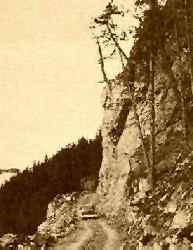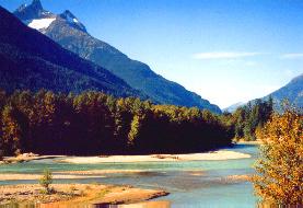 Postcard: August 20, 1998 Ever since we planned this trip, we have known we would have to pull "the hill". The Hill is a 43 kilometer stretch of narrow road east of Bella Coola. There is a 5.5 mile part of it which climbs with grades of up to 18 % grades. Depending on your source, the road is either terrifying or a "piece of cake". There is even a brochure available at the Port Hardy ferry terminal describing it. That was not a good thing for the peace of mind of this less than intrepid traveler. We arrived in Bella Coola in the mid afternoon. During a quick stop at the neighborhood grocery store, I learned that the daughter of the checker had driven straight from Vancouver to Bella Coola, after a Spice Girls concert. She drove the hill during the night. Of course, she is only 18. We heard from various sources that the Hill was in disrepair. Others said that it was in good shape. We would have to test it for ourselves We camped at the Gnome's Home RV park in Hagensborg, a Norwegian settlement just 15 miles outside of Bella Coola. The sites at this park are large, some in grassy areas, others in the forest. At the edge of the campsites, is located several acres in reserve which has been left in a natural state. Boardwalks cover this area, with signs pointing out different trees, what sorts of animals, amphibians or insects you might expect to find, and other information on the ecology of this area. On this preserve, as in other parts of both towns, references to the bears of the area were everywhere. The chum salmon are spawning now, and we expected to see bears in every stream. Dozens of eagles wait for their dinners on the shores of the streams, but no bears were in sight. Rumor has it that there is an unwritten law which all bears know and every fisherman must learn. "You catch the fish, I eat the fish, you run away." Karl, "Mr. Bella Coola", recommended we tour the town, with stops at this historical museum, at Kopas, where you can get anything from CDs to bear bells, and at a local artist's shop. He told us where to go for fish (the grocery store in town doesn't carry it, because "everybody already has fish!"). If we wanted to see bears, the local landfill in the morning was certain to have some. There is a side trip to the top of Mt. Saugstad for the surrounding scenery. Exploring Bella Coola, we met Darren Edgar, the goodwill ambassador of the town. He will take you on a tour of the town, or out to see the petroglyphs. Having lived here all his life, he is a walking encyclopedia of the area. We stopped by the historical museum in the afternoon and enjoyed the pictures of the pioneer days. The curator of the museum is married to a direct descendant of the founder of Hagensborg. If all this makes Bella Coola seem like a small town -- it is. But the "town" stretches for miles, through Hagensborg, Firvale to Stuie. As far away as the Tweedsmuir Lodge, some 75 kilometers east, the proprietress considers herself a citizen of Bella Coola, and knows most of the people of the area. I find myself staring at a blank computer screen when I try to find words to describe the Bella Coola Valley. Larger and as awesome as Yosemite. Norway's fjord country. Glacier sanded granite cliffs rise straight up to 9,540 feet, while the floor of the valley is at or about sea level. Rushing streams make silver streaks down the sides of the hills. Glaciers perch precariously on impossibly steep slopes. Glorious! The road we will be following is known as the Freedom Road. In 1953, the last 60 km of the road connecting Williams Lake, BC with Bella Coola was finished, and the people on the coast were no longer landlocked. The road had been considered impossible, since it had to climb the Coast Range, and work its way through miles of deserted backcountry. The government thought this an impossibly expensive task, and it was due to the perseverance and hard work of the locals that the road was completed. Today sections of it are still unpaved, though reasonably smooth. It covers some of the most beautiful country -- BC's "Last Frontier". It also covers The Hill.