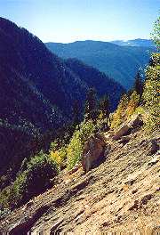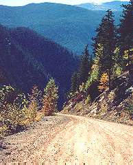 While Heckman Pass is still 5.2 miles ahead, and some 1,000 vertical feet higher, at this point most of the challenging portion of The Hill is now behind you. From here the road dips down a few hundred feet over the next 1.8 miles before resuming its final climb to the top of Heckman Pass. This last 3.4 mile segment climbs approximately 1500 feet to the top of the pass. The overall average grade here is noticeably less, though portions of the last mile offer a few reasonably sharp turns, and shorter grades comparable to some of the steeper parts you've already encountered. But there are no cliffs or overhangs along this portion, and by comparison this segment is "duck soup". With this detailed description in mind, we'd like to offer some of our own impressions from doing The Hill in both directions. First, we should point out that the vehicle we were driving was ideally suited for this type of roadway. We were driving a one ton Dodge dually, equipped with four wheel drive, a five speed transmission, and a Pac Brake which provides the diesel engine with considerably more compression than diesel engines typically offer. In the truck bed was an 11 foot slide in camper unit which weighs in at just over 3,000 pounds. We used second gear going up the hill, and engaged the four wheel drive simply for added convenience -- we clearly didn't need it. Ascending in second gear left a great deal of power unused. In fact, at no time did the auxiliary cooling fan even come on. Descending The Hill we used second gear on the steepest sections, and third gear on the rest. And with the benefit of the Pac Brake, we could have done the entire downhill run without touching the service brakes had we wanted to do so. We do not want to either understate or overstate our evaluation of the relative difficulty of The Hill. To us, it was considerably less challenging than we had expected -- in both directions. At the relatively slow speeds most drivers will handle this road, it is not particularly bumpy for a gravel road. The main portion of the hill is mostly a two lane road for the top portion, changing to a mostly one lane road with ample pullouts to permit passing on the lower portions. The middle segment -- that portion between the two switchbacks -- offers a fairly steep downhill drop off at the outside edge of the road, but we found it somewhat less intimidating in that respect than other back roads we've traveled on other occasions. Traffic is quite light, and is comprised of everything from an occasional biker to 18 wheelers. There is a bus service twice weekly between Williams Lake and Bella Coola which travels this route as well. While we found both the uphill trip and the downhill trip quite easy (with hindsight Stephanie now says she'd be comfortable driving it either way -- and would far prefer either to driving through Los Angeles on the freeways), most travelers would probably find the uphill trip the easier of the two. For vehicles towing fifth wheels or travel trailers, we'd think the trailer brakes and brake controllers should be carefully tested before attempting the downhill run to ensure both braking systems were contributing their fair share. And of course the challenge of The Hill increases proportionately with the gross combined vehicle weight. We recognize that any type of mountain driving will be viewed differently by drivers familiar with mountainous terrain, than by those whose experience has been limited to the flatlands. We think that by simply observing some common sense considerations, driving The Hill can be an entirely pleasant trip in either direction. Go in daylight hours when visibility is not impaired (the vistas are wonderful), and avoid treacherous weather conditions. Above all, take your time. Drive slowly using lower gears, and make a few stops along the way. The locals will advise stopping a few times on the descent to let your brakes cool. We hope these observations will be helpful to those considering making
