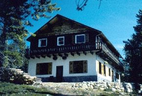 the larches were a brilliant gold. We spent several days exploring the alpine ridges, wandering as far afield as the Giant Cleft and 2551 metre (8370 feet) Quiniscoe Mountain. In the evenings we rested our weary feet in the comfortable surroundings of Cathedral Lakes Lodge at Quiniscoe Lake. We quickly appreciated the entrepreneurial foresight of lodge-founder Herb Clark. For it was his effort that created the equalizer that has allowed access for those of us who lack the motivation or stamina to back-pack 16 kilometres (10 miles) up a mountain trail. Although I've seen written accounts of visitors exploring the alpine nearly a century ago, it wasn't until the mid-1930s when "tourist" traffic into the area began in earnest. It was then that Herb Clark purchased Crown land near Quiniscoe Lake and built two cabins to serve his guiding clients.